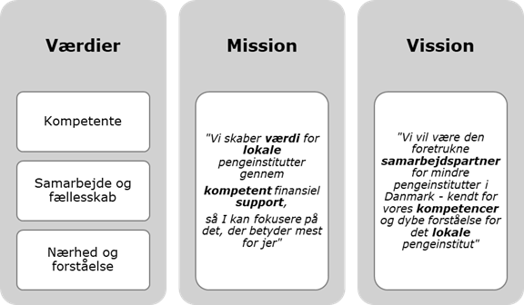 Som lokal samarbejdspartner kender vi de udfordringer, som mindre pengeinstitutter står overfor. Vi arbejder tæt sammen med vores kunder og leverer løsninger, der er tilpasset deres behov. Vores ambition er at frigøre tid og ressourcer, så institutterne kan koncentrere sig om det, der er vigtigt for dem – deres kunder og kerneforretning.